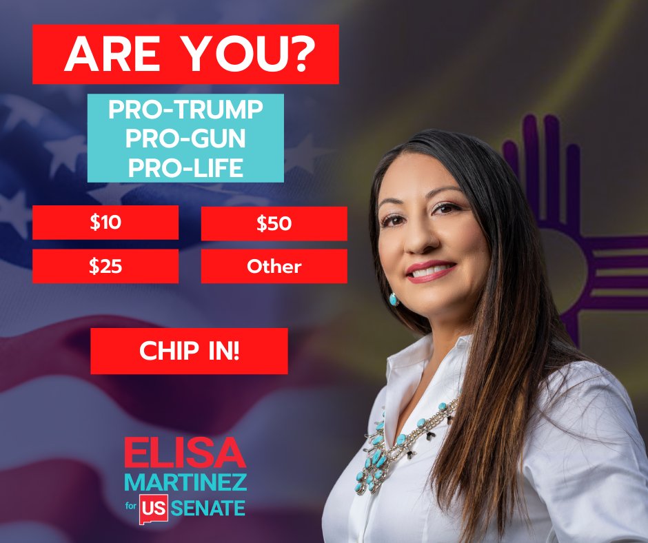 I support Elisa Martinez for U.S. Senate with dollars and words. Get the word out and vote for Elisa Martinez for U.S. Senate.