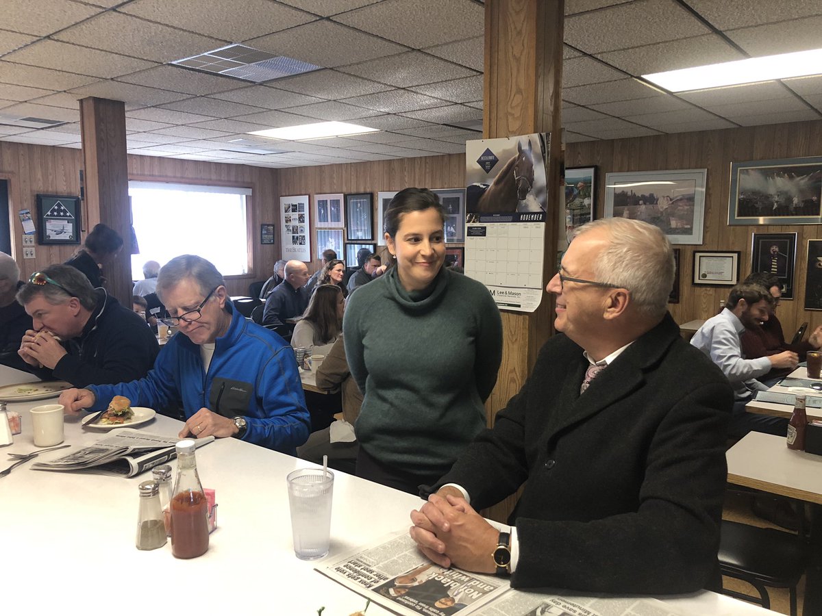 Request you find a lighter foundation or quit wearing your hair back for you weak photo ops
