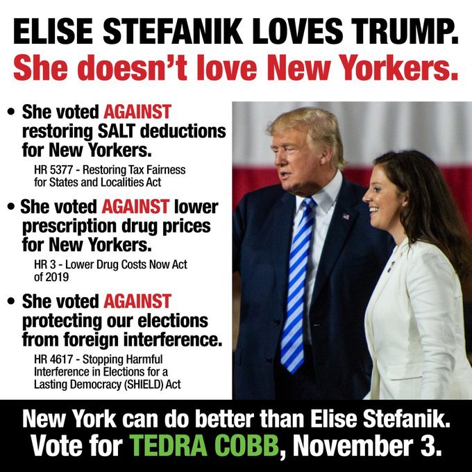 The reason Stefanik can't run on her record is because it is abysmal and stinks to the high heaven