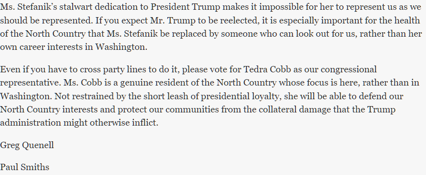And you used to tout yourself as “ the independent voice for the north country”. That went south fast.