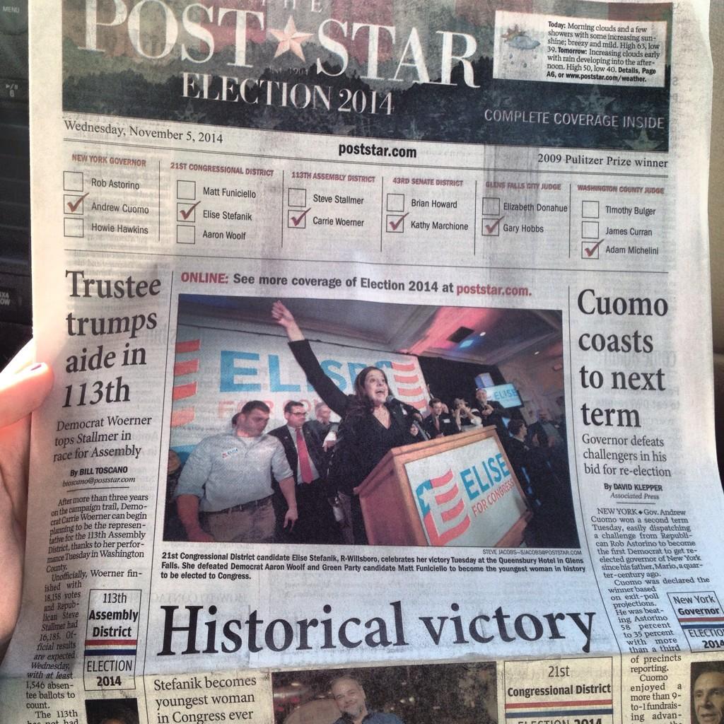 Elise Stefanik‏Verified account @EliseStefanik 5 Nov 2014