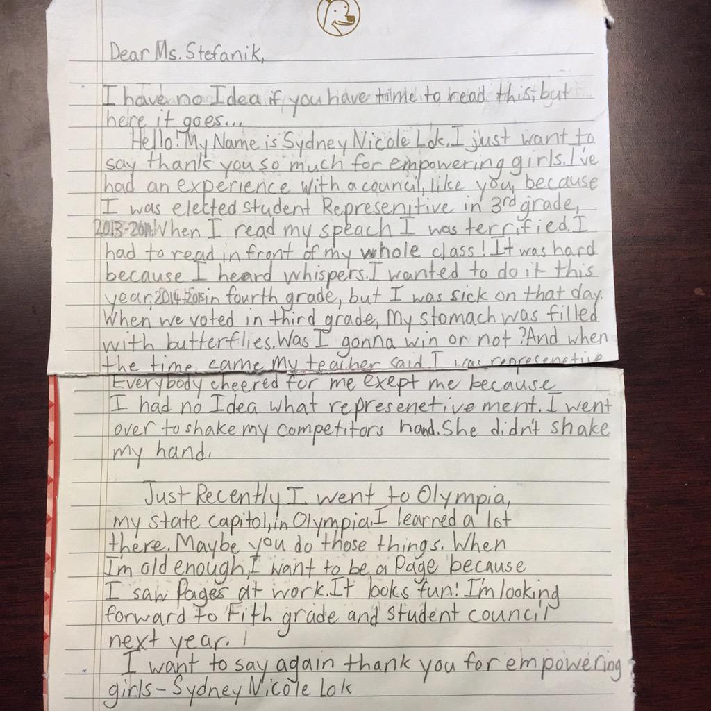 Yes Sydney, I definitely had time to read your thoughtful letter. I'm so proud of you for making a difference!pic.twitter.com/Nda0RjFUuE