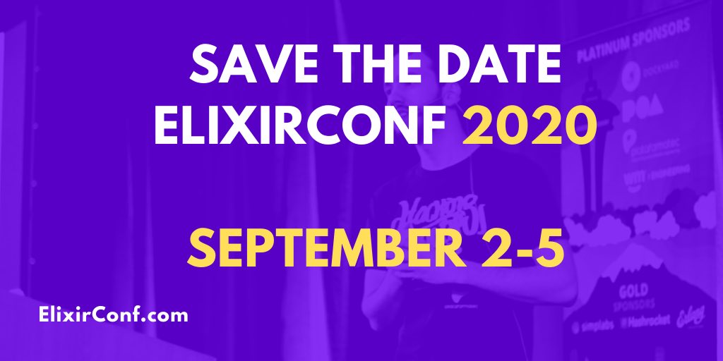 Save the date for ElixirConf 2020! September 2-5, 2020 at