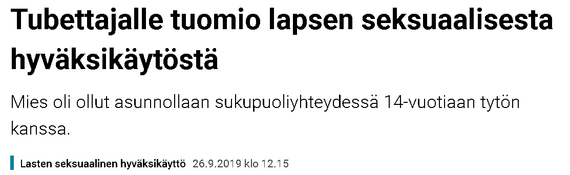 Yle teki hiljattain hehkutusjutun tästä Kokemusten summa -tubettajasta. Ylelle tosin pointsit siitä, että se vissiin myösa uutisoi ao. tubettajan seksuaalirikostuomiosta ensimmäisenä. Maineenpaikkausta, riskienhallintaa, luultavasti.https://yle.fi/uutiset/3-10328731 …