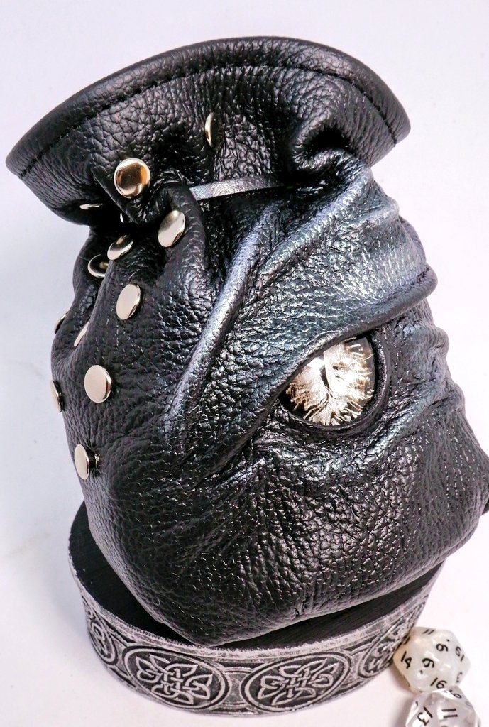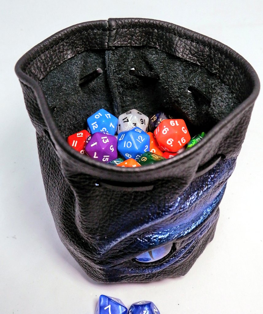 I've just finished this one! Handmade in soft Black Leather with a Hand Painted Dragon's eye for 90 Dice. http://www.etsy.com/shop/embraceleather …