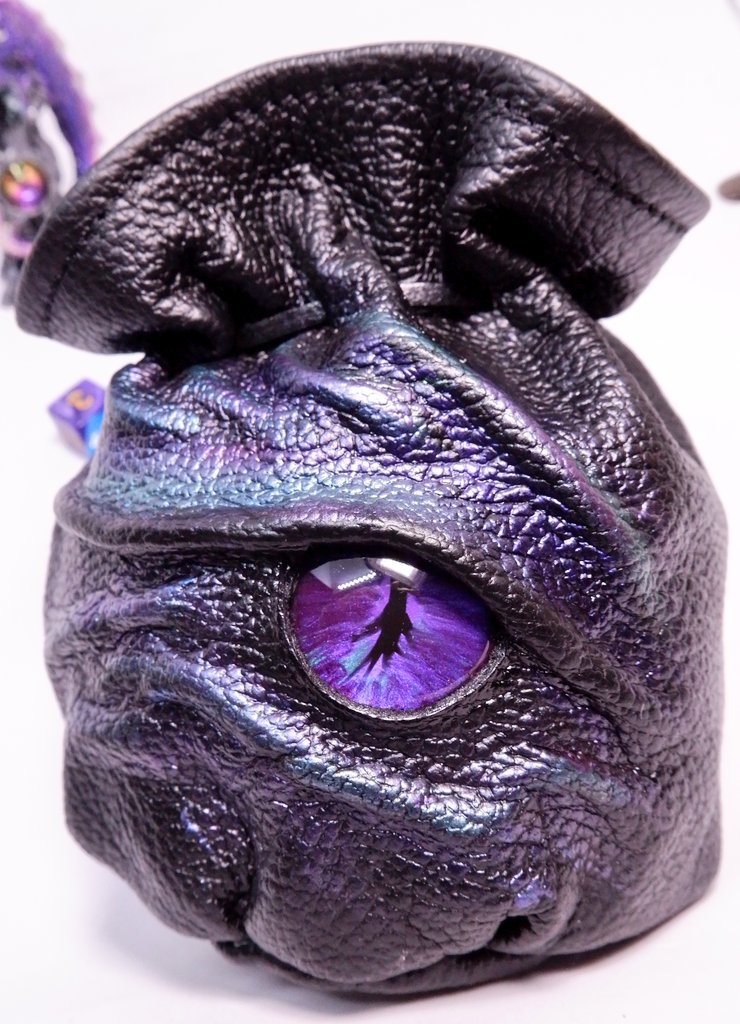 New Today A Handmade Leather Dice Bag with a Hand Painted Dragon's Eye for 50 Dice. http://www.etsy.com/shop/embraceleather …