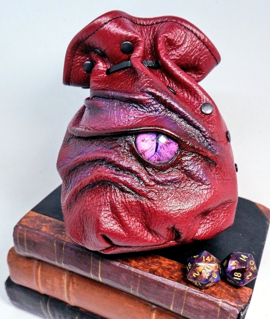 This Cheeky Devil is handmade in soft Black Leather with a Hand Painted Dragon's eye for 55 Dice. http://www.etsy.com/shop/embraceleather …
