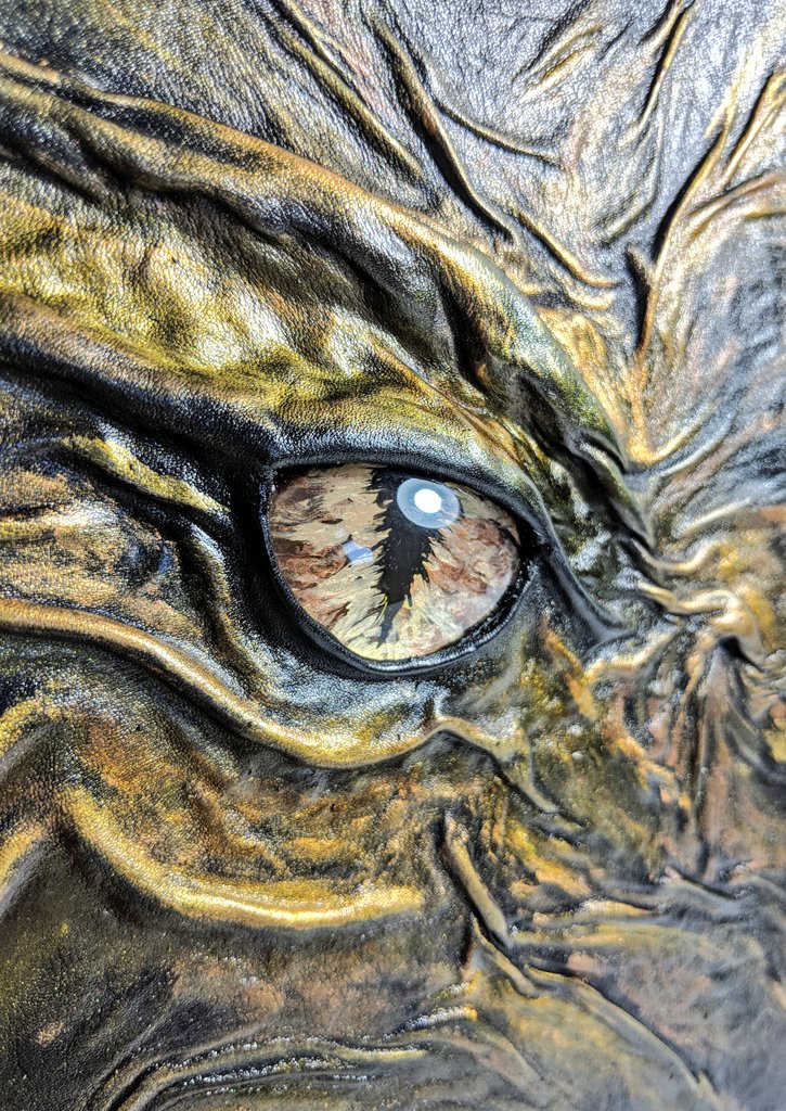 I don't make many of these but I painted the eye and it said 'Book' and what a dragon wants a dragon gets. http://www.etsy.com/shop/embraceleather …