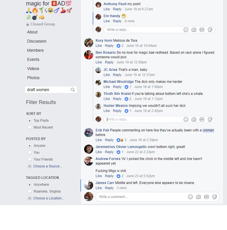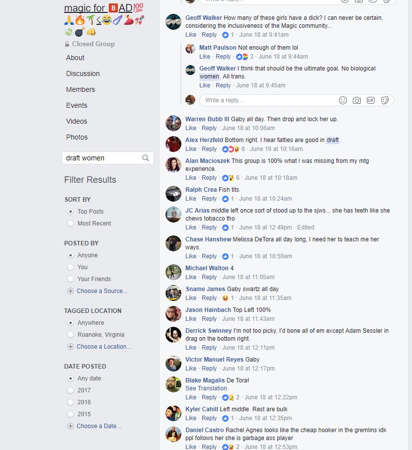 So, I guess I'd just been lucky enough to dodge it for a long time, but I found out about a FB group (modded/created by @TravisWizard) that featured a draft of female Magic personalities based on their bangability.