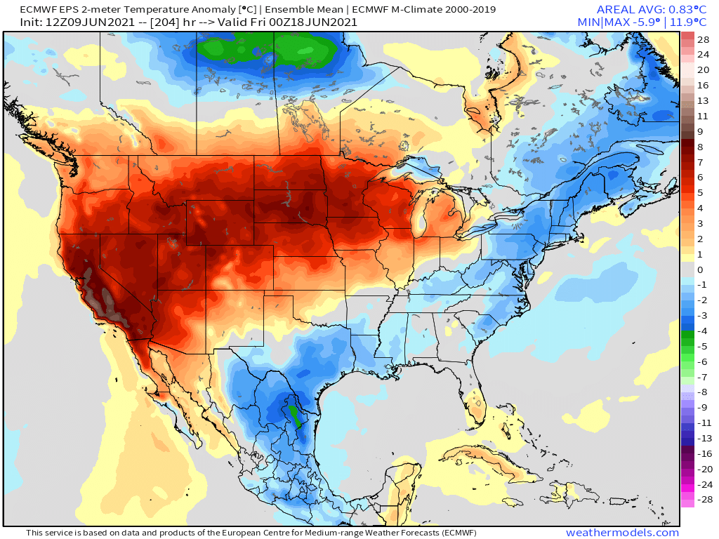 Models once again hinting at potential for major heatwave about a week from now. Operational runs hinting at what could be rather intense event, with June monthly temperatures records threatened, although ensembles more muted. Still, very strong heat signal for mid-June...