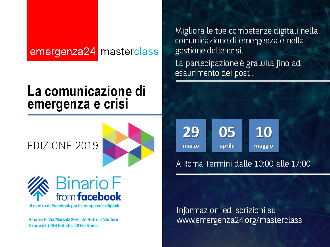 [07.03-00:00][formazione] Partecipa gratuitamente a Emergenza24 Masterclass 2019 “La Comunicazione di Emergenza e Crisi sui social” a