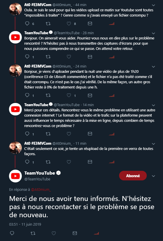 Par contre quand c'est Atonium qui demande (sans vous mentionner) ca répond immédiatement @TeamYouTube , bravo 👏pic.twitter.com/pXdqcDDyzp