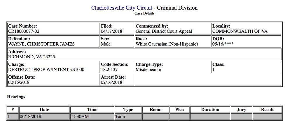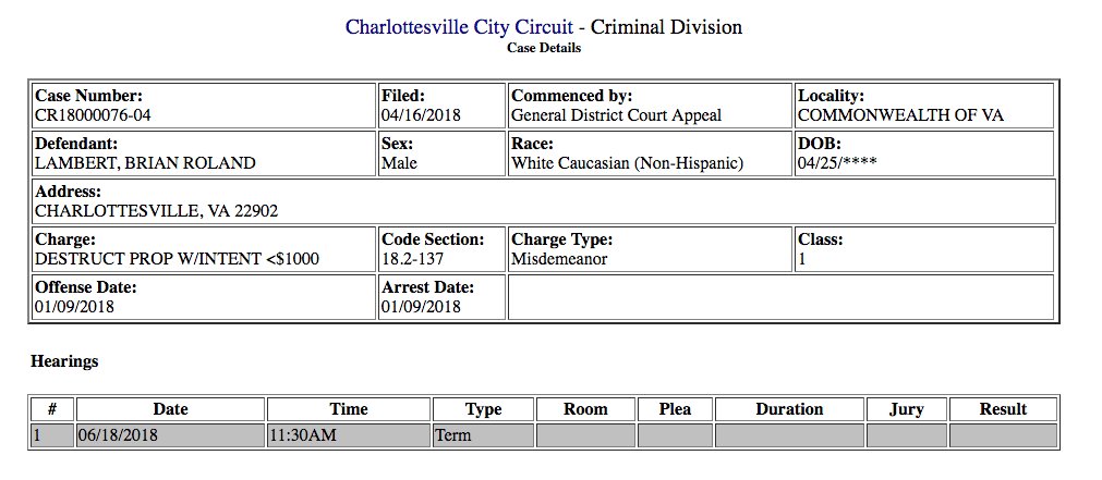brian lambert and chris wayne are in charlottesville circuit court this morning appealing their march convictions for removing the (now legally removed) tarps from the confederate statues.pic.twitter.com/dQ0S3lTJDH
