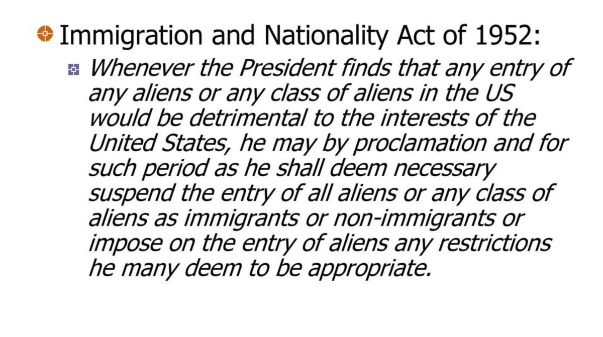 I posted it merely to show that it is well within Congressional power to change the situation. Also that the travel ban is legal under that law (doesn't mean I'm saying it's good, just that it's legal under current law). There are plenty of terrible laws on the books.