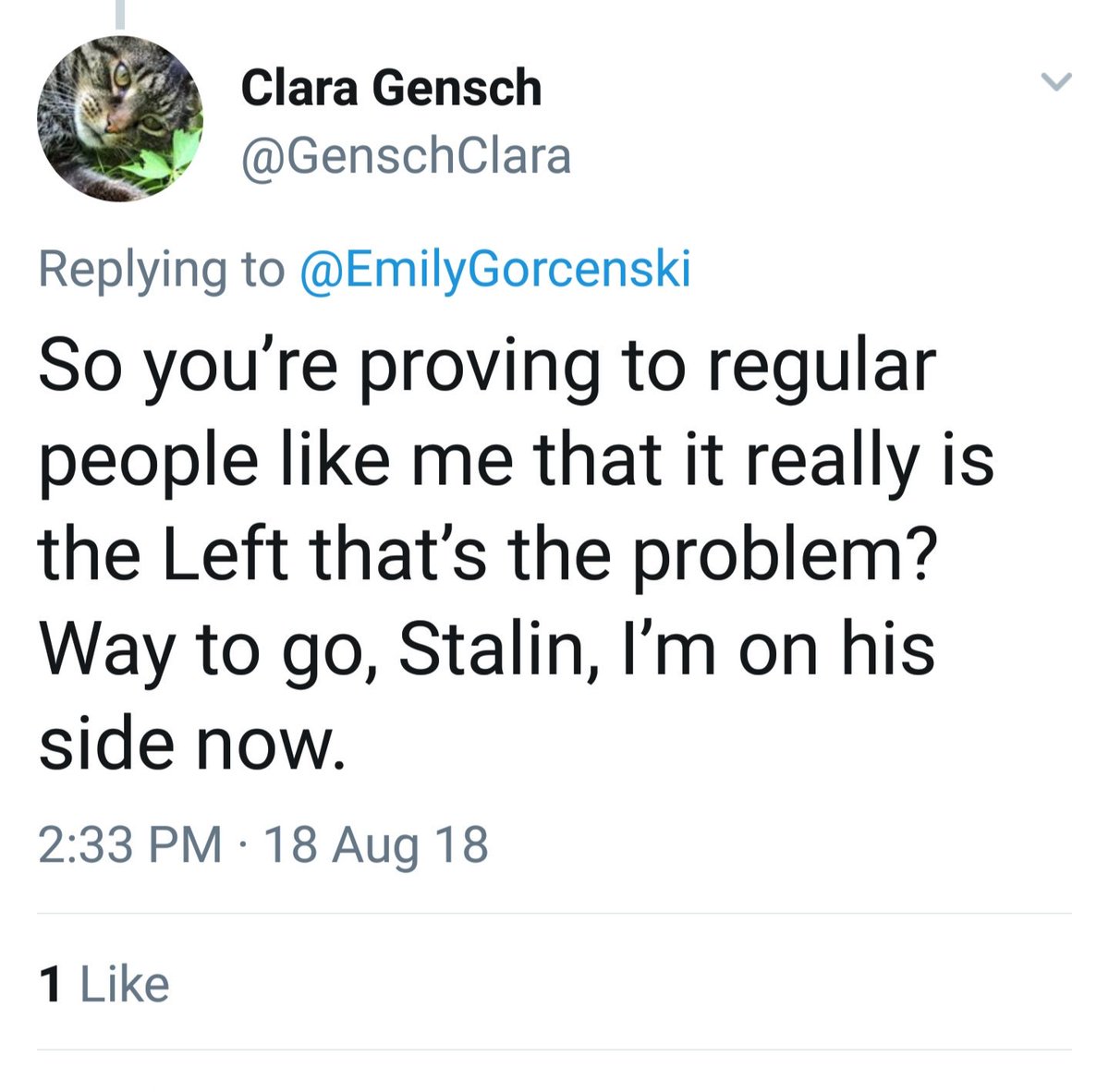 So you’re proving to regular people like me that it really is the Left that’s the problem? Way to go, Stalin, I’m on his side now.