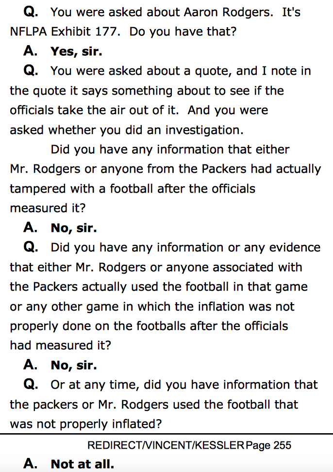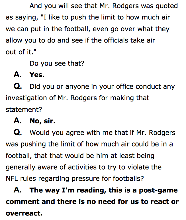 Alrighty then. NFL atty cross-ex of stat guy appears to have done nothing but suck up Brady's allowed (very short) 4 hr time. Now at pg 226.