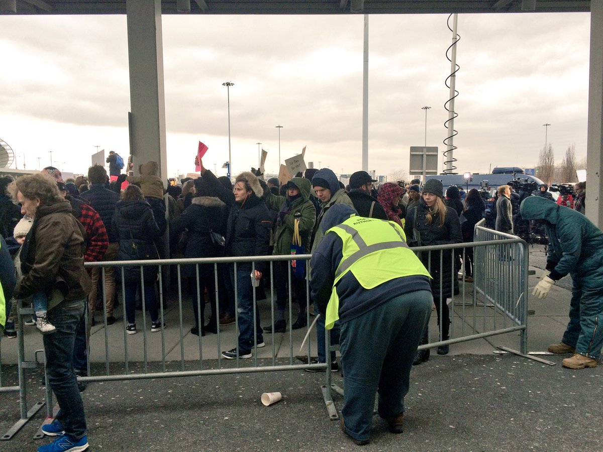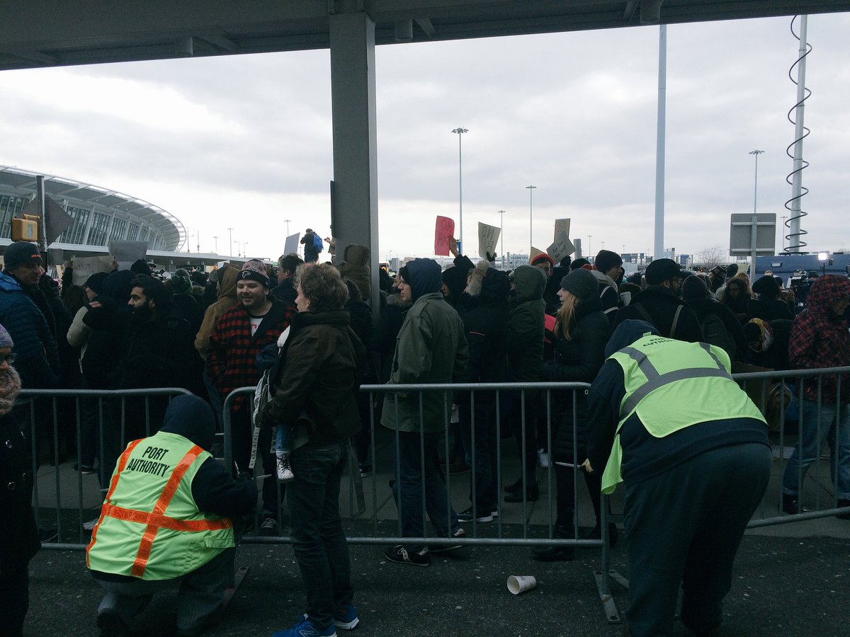 #JFK employees penning in protestors, trying to contain our action. #NoMuslimBan #Terminal4pic.twitter.com/xmdFn90gpC