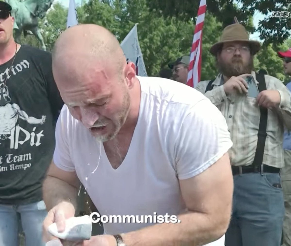 Yes, he is visible spraying mace, only one person used mace, and I was one of the people he maced.