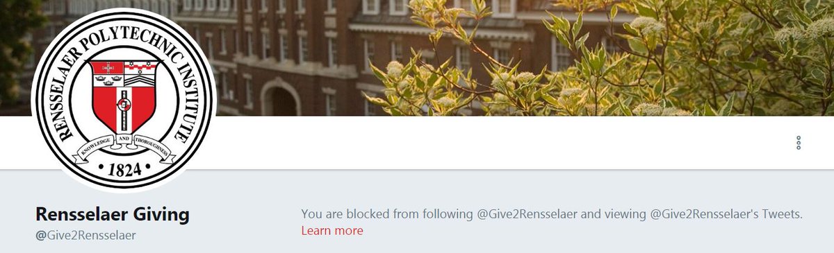 Despite creating the new Twitter account @Give2Rensselaer, the #RPI Jackson Administration is back to its old ways and has blocked us. @RPI is asking you to support students while silencing the very students it claims to want to support. #Transformative #RPIAlumni #Rensselaer pic.twitter.com/gzI5Z6cHwt