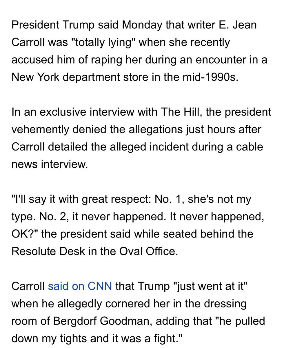 “Ms. Carroll said she had no expectation that telling her story would have an impact. At 75 years old, she has come not to expect such stories to come to anything.”https://www.nytimes.com/2019/06/27/us/politics/jean-carroll-trump-sexual-assault.html …