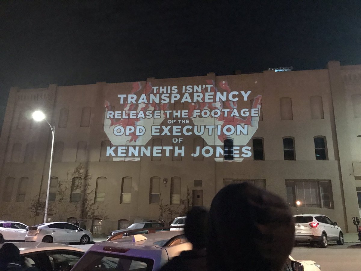 NOW AT OPD HEADQUARTERS: Demonstrators reading out the newest press release from OPD describing the body camera footage from last nights officer involved shooting that resulted in the death of Kenneth Jones.pic.twitter.com/9uIZcnMwEG