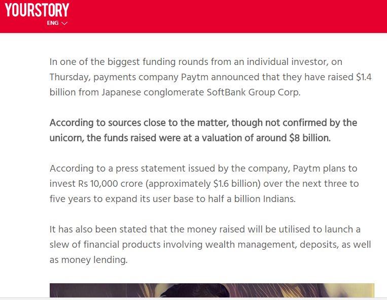 @Paytm#SoftBank deal is said to value Paytm at around $8Bn, according to sources. https://yourstory.com/2017/05/paytm-raising-1-4-bn-softbank-to-onboard-500-million-indians/ …pic.twitter.com/MdUaSNGEUJ
