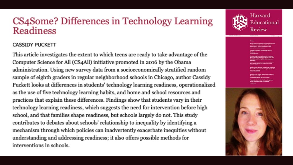 @emory_sociology! Excited for my new article@Harvard_Ed_Pub! Provides important new considerations for#csforall#cs4all about differences in students' technology learning readiness that can exacerbate inequality#digitalinequality#soctwitter#edtech 1/5https://twitter.com/emory_sociology/status/1207796337808416769 …