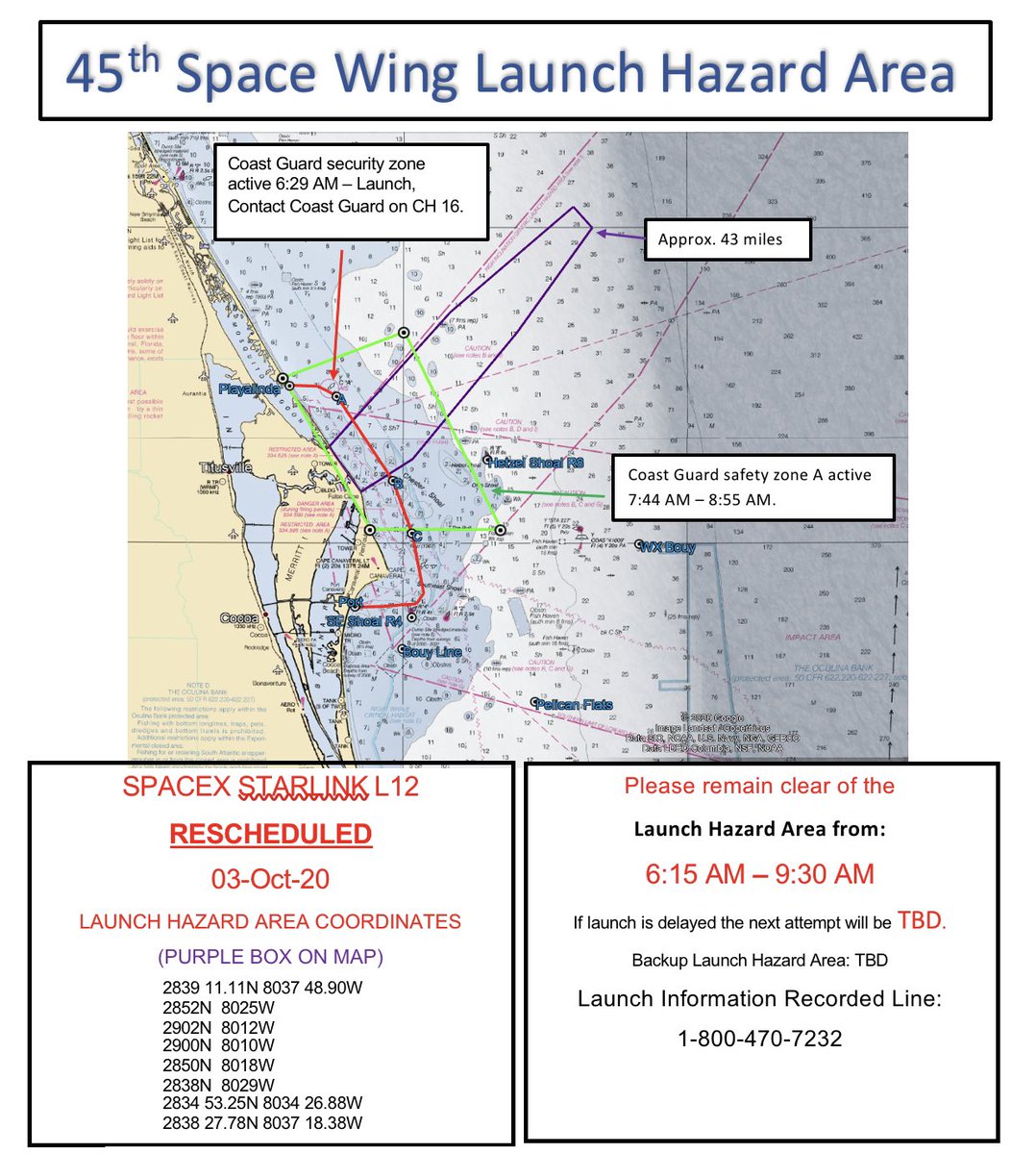 Can’t recall the last time I got two hazard area notices in the same update. — Oct. 2 @ 2143 ET: Falcon 9 GPS — Oct. 3 @ 0834 ET: Falcon 9 Starlink Start making your sacrifices to the GSE gods now.pic.twitter.com/jPOeGvon90