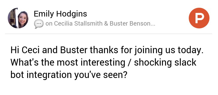 @SlackHQ's@Buster &@CeciStalls a question on@ProductHuntLIVE https://www.producthunt.com/live/cecilia-stallsmith-buster-benson#comment-455047 … (starting soon!)