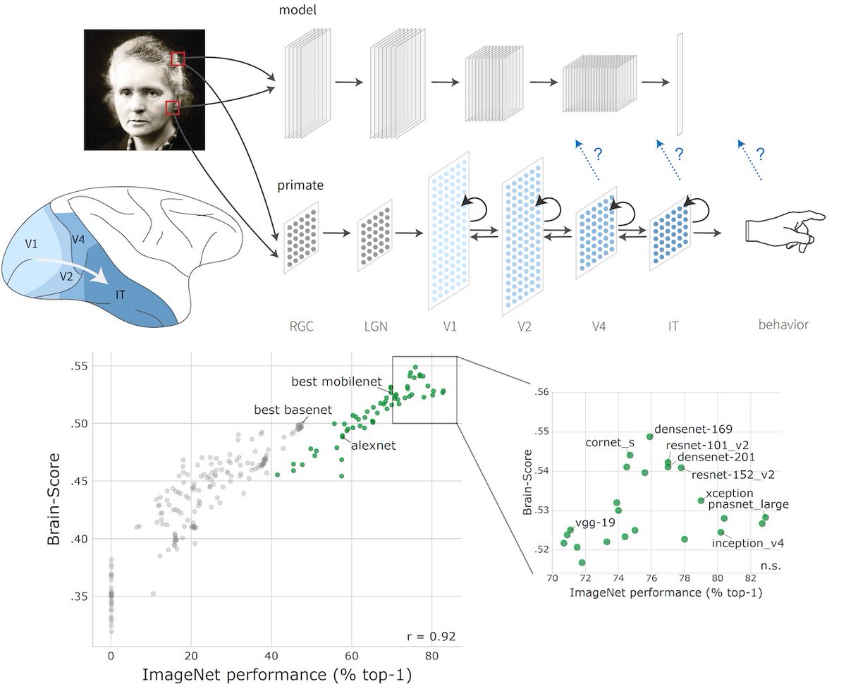 Ever wondered which deep nets were most brain-like? (spoiler: not the best ImageNet models) Check out http://Brain-Score.org and our latest paper https://doi.org/10.1101/407007 ! Winners: DenseNet-169, ResNet-101 and... CORnet-S - read on...pic.twitter.com/z23WouiBN7
