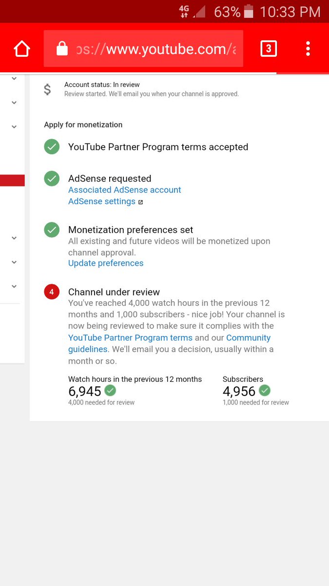 @TeamYouTube Hello youtube team i have completed 4k hours watch time and 1k suscriber and my channel under review for 3 month pleasevon my monetization on thank you. https://www.youtube.com/channel/UCfYCdrBSM52EEgxcLNQo42w …pic.twitter.com/KZX96Llm4a