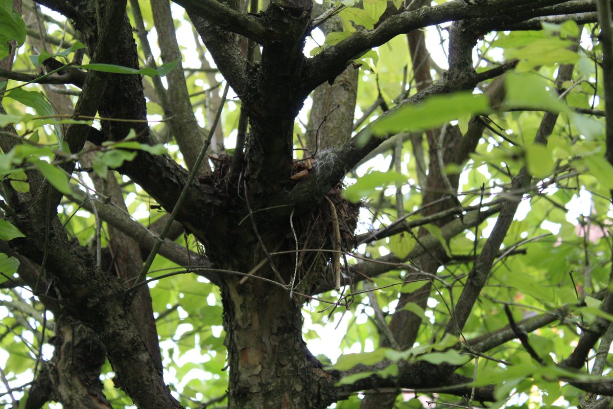Unser Beitrag zum Tierschutz: Wespennester dürfen bleiben (aktuell haben wir 7 unterschiedlich große Wespennester im Garten - hier ein kleines Exemplar). In unserem zum Großteil naturbelassenen Garten finden auch Vögel einen Nistplatz.