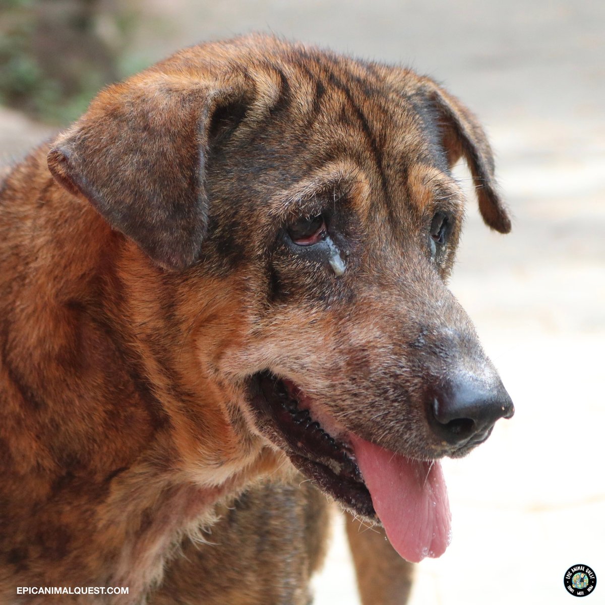 It's common to find dogs with mange and eye conditions like this guy in the pagodas in Cambodia.