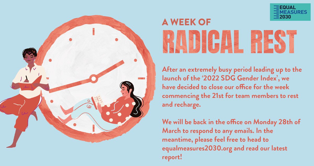 That’s why EM2030 team members will be taking a week of radical rest this week after the busy launch of the 2022 SDG Gender Index.