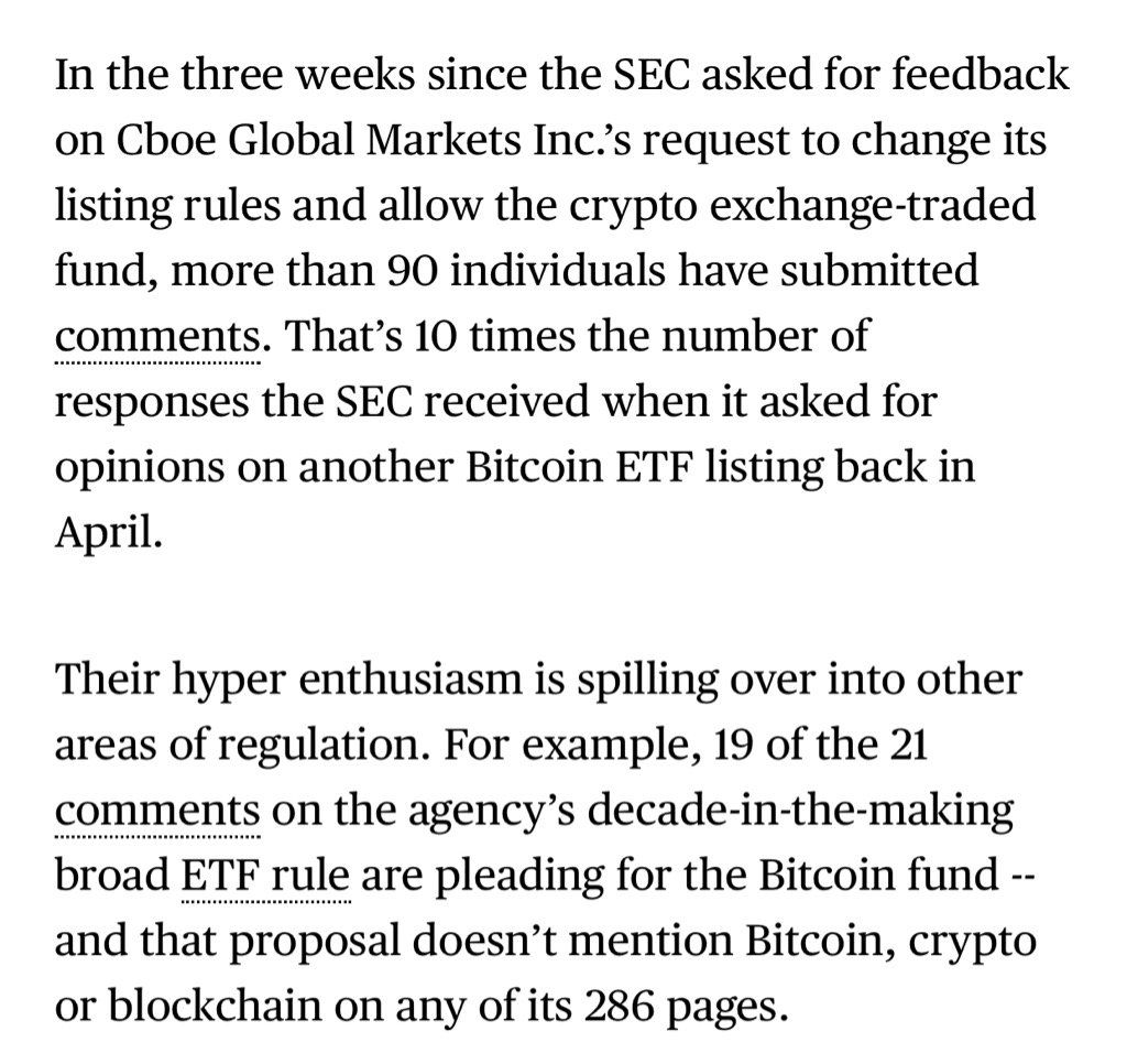 SEC receiving 10x the comments on proposed Bitcoin ETF vs last time around. Some wild stats via