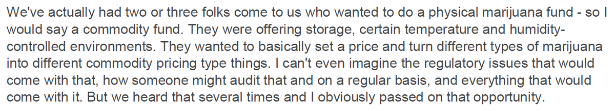 Lol, multiple ppl have tried to get a physically backed marijuana ETF launched thru white label issuer Exchange Traded Concepts..https://twitter.com/nategeraci/status/1019696152080502784 …