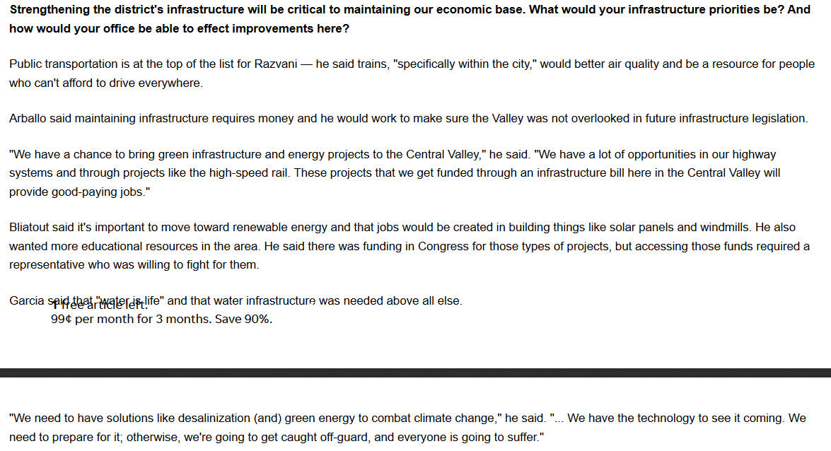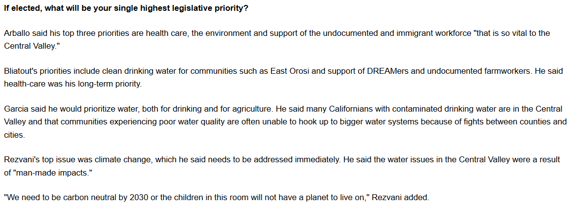 Here are some of the highlights that were reported from last nights forum for #CA22 All the candidates @BobbyBliatout @DaryRezvani @PhilArballo2020 @EricG1247 showed up except for @DevinNunes who did not show up.