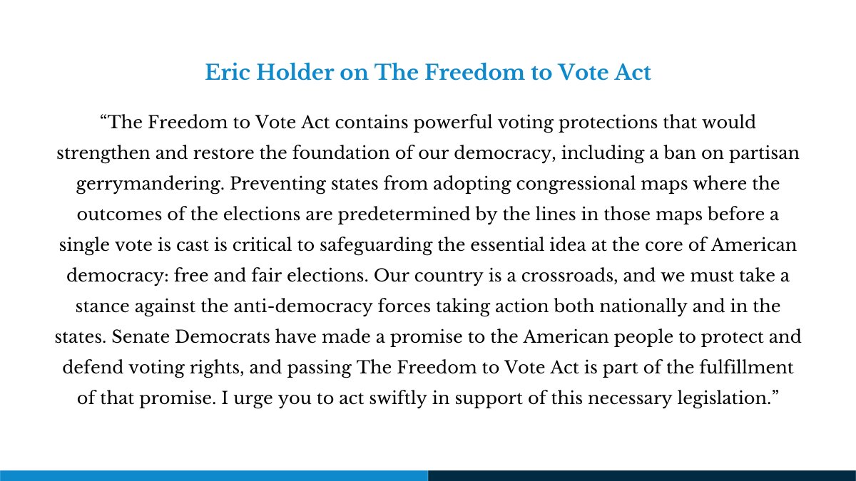 #FreedomToVoteAct is a necessary part of that promise. I urge Democrats-there will be no help from Republicans-to act swiftly and pass this necessary legislation. No excuses.https://twitter.com/DemRedistrict/status/1450538995578925056 …