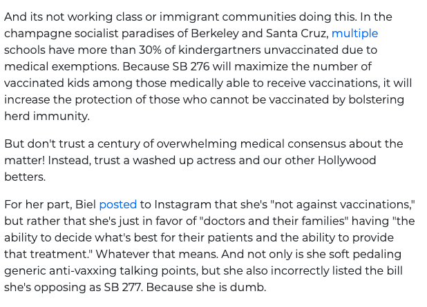Jenny McCarthy brought anti-vaxxing into the mainstream, and Hollywood has followed suit. It's not immigrants or the working class obliterating the herd immunity of California kids. It's the wealthy. #CancelJessicaBiel https://www.washingtonexaminer.com/opinion/jessica-biel-is-canceled … pic.twitter.com/FkpR4k8VKz