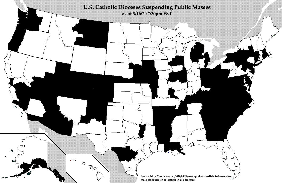 I think it’s important to note that some dioceses (using Charlotte, NC as an example) don’t really have a choice, as the governor signed an executive order banning public gatherings of over 100 people. My former parish (in that diocese) attracted ~1200 per weekend Mass