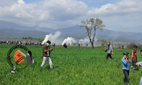 #overthefortress#Idomeni protest growing up, thousands now. Police use teargas. People resist and throw them backpic.twitter.com/l85YIIy6ud