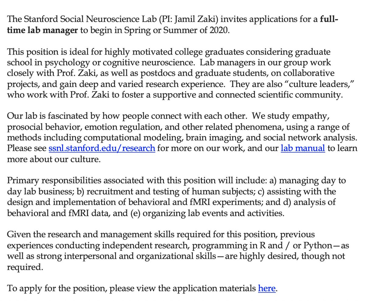 My lab is hiring a new lab manager / research coordinator for next year! Come do research in social cognitive development at Yale! Application details: https://bit.ly/2Rcu6kD Info on the lab: http://socialcogdev.com Initial deadline is March 1st. Please RT!