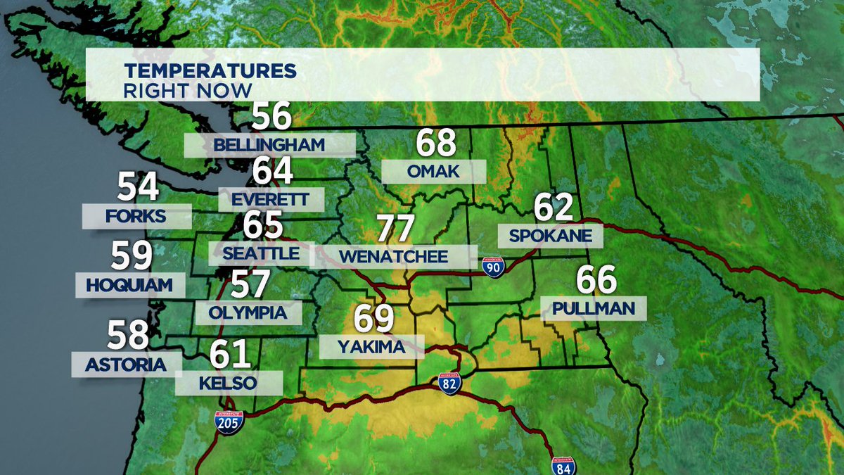 Slightly cooler today, but still Hot especially for those in Eastern WA. RED FLAD Warning and HEAT Advisory in effect through this evening. Join us this AM on