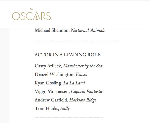 The official Oscars website says Tom Hanks got nominated for Sully.pic.twitter.com/KlJpnX2rlR