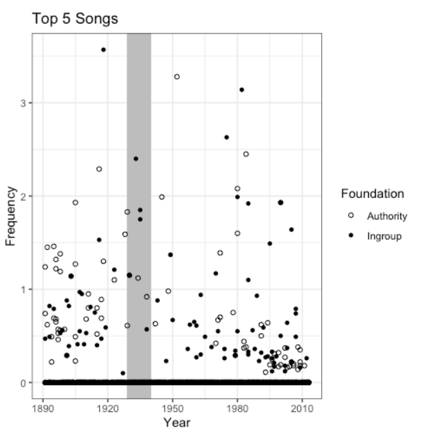 Here's the fun twist: it's only politics. And persuasive speech in particular. For instance, they don't see any shifts in lyrics of the top five most popular songs on the US Billboard music charts, or other markers of popular speech during the same time period. 5/npic.twitter.com/muybieiCFZ