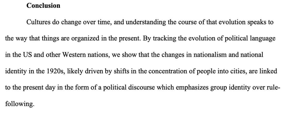 Why? Census data suggests growing urbanization led to rises in American nationalism - and the more nationalistic Americans felt the year previously, the more likely US presidents were to talk about the country in communal in-group (rather than authority-related) terms 3/npic.twitter.com/cVTF0rabdR