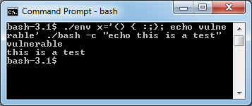 @ErrataRob@mubix: For the record, cygwin is vulnerable, as well as bash-3.1 from 2005#shellshockpic.twitter.com/6mTfBd4r05
