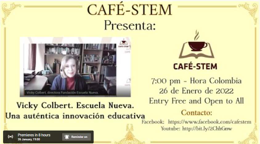 #CaféSTEM del 2022. En él Vicky Colbert, directora ejecutiva de FEN, hablará sobre el modelo Escuela Nueva Activa https://youtu.be/19bIWE1mT5A pic.twitter.com/F32pWBHWtC