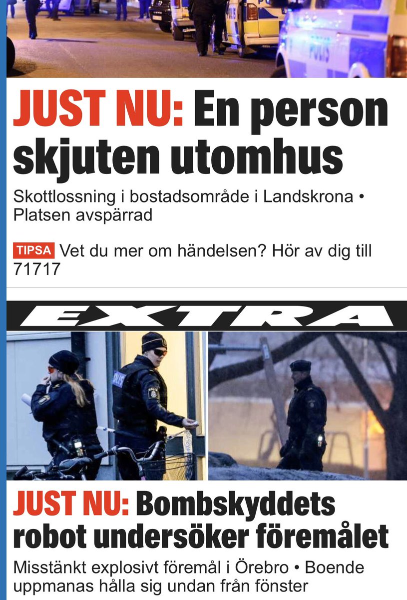 ”Misstänkt explosivt föremål i Örebro” Örebro har 120 650 invånare.https://www.expressen.se/nyheter/misstankt-explosivt-foremal-i-orebro/ …