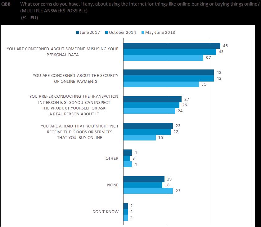 GDPR - Misuse of personal data and security of online payments are top two concerns among Internet users. Take a look to Special Eurobarometer 464a on Cybersecurity (June 2017) http://ec.europa.eu/commfrontoffice/publicopinion/index.cfm/Survey/getSurveyDetail/instruments/SPECIAL/surveyKy/2171 …pic.twitter.com/irrEgfveSb